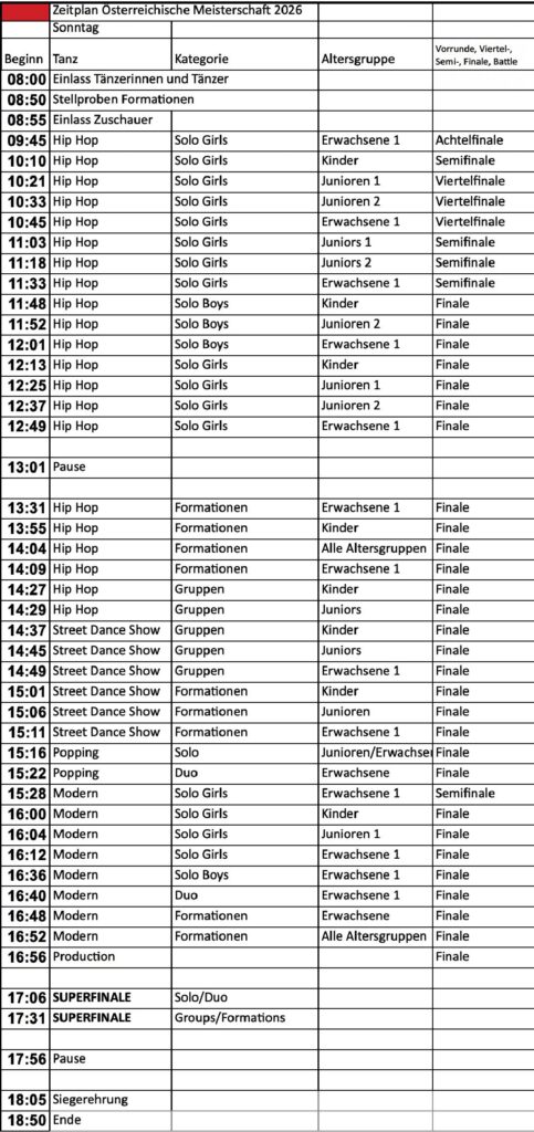 Each dancer pays an ÖTF annual start fee of 20,00 €. This is accounted for all dancers per institution! e.g., 15 dancers = 300,00 €